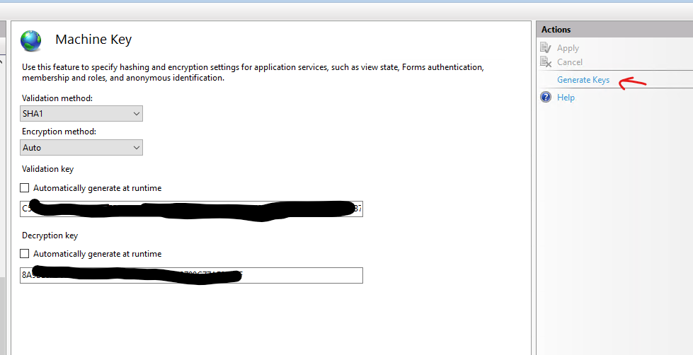 Jeżeli w środowisku mamy kilka witryn albo kilka serwerów podłączonych do jednej bazy danych, to dla każdej witryny w jej pliku web.config należy wpisać te wygenerowane klucze. Klucze można wkleić bezpośrednio w web.config albo z poziomu IIS Managera.
