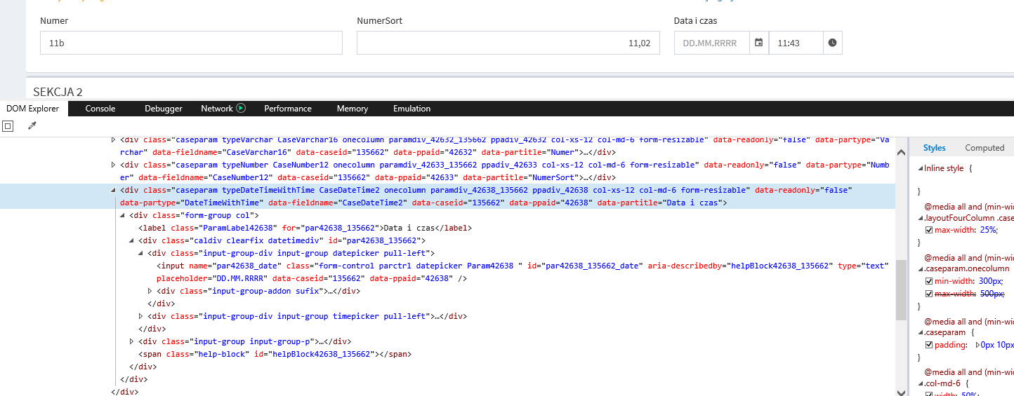 Należy odczytać jakie są klasy nadane dla tego elementu w div z klasą caseparam i dodać odpowiedni wpis w polu ze stylami CSS na ustawieniach procesu (uwaga na wielkość liter):
